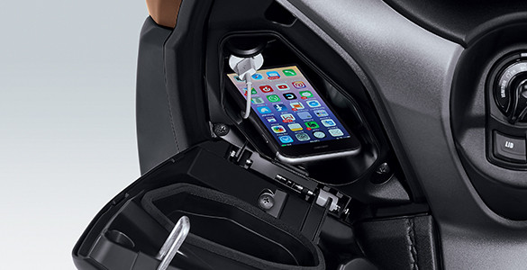 EXTRA LARGE UNDERSEAT STORAGE WITH LED LIGHT Bagasi ekstra luas yang dilengkapi dengan lampu LED mampu menyimpan hingga 2 helm full face ukuran XL. Sangat praktis dan fungsional. Memberikan pengalaman ultimate berkendara.