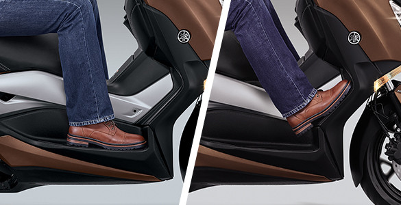 RELAXED & UP RIGHT RIDING POSITION XMAX 250 CC memiliki posisi riding tegak sehingga meningkatkan kontrol serta pandangan yang baik bagi pengendara. Juga dilengkapi dengan dua pijakan kaki dan desain jok yang luas dengan kontur ganda memberikan kenyamanan maksimal bagi pengendara.